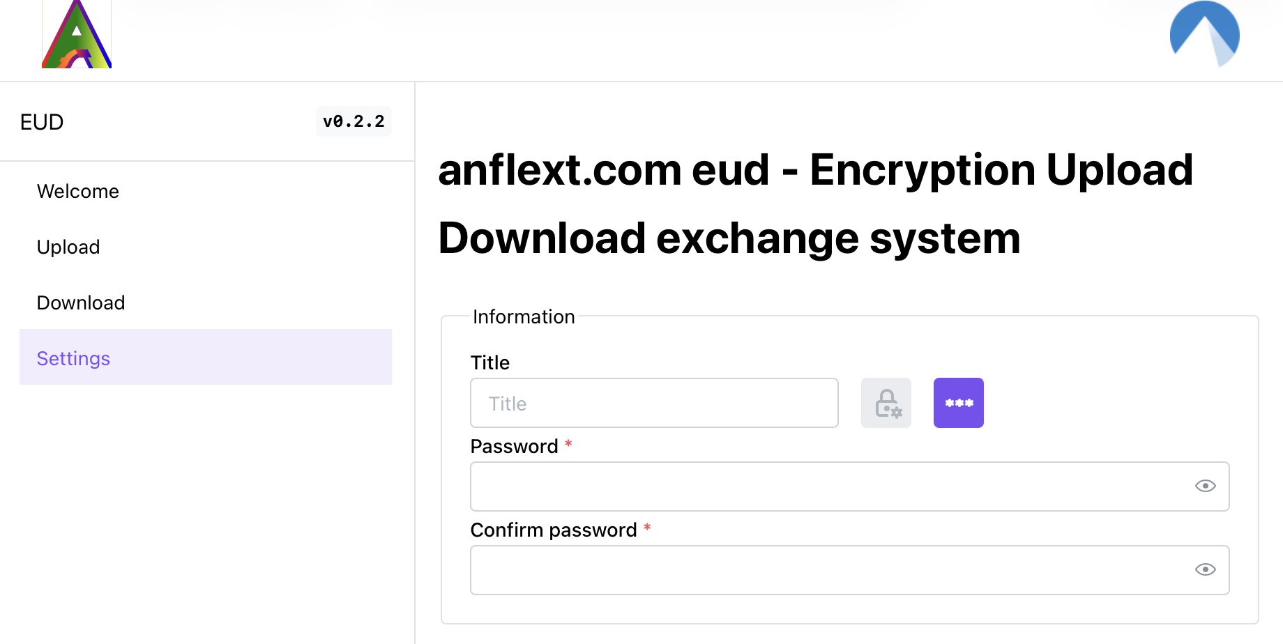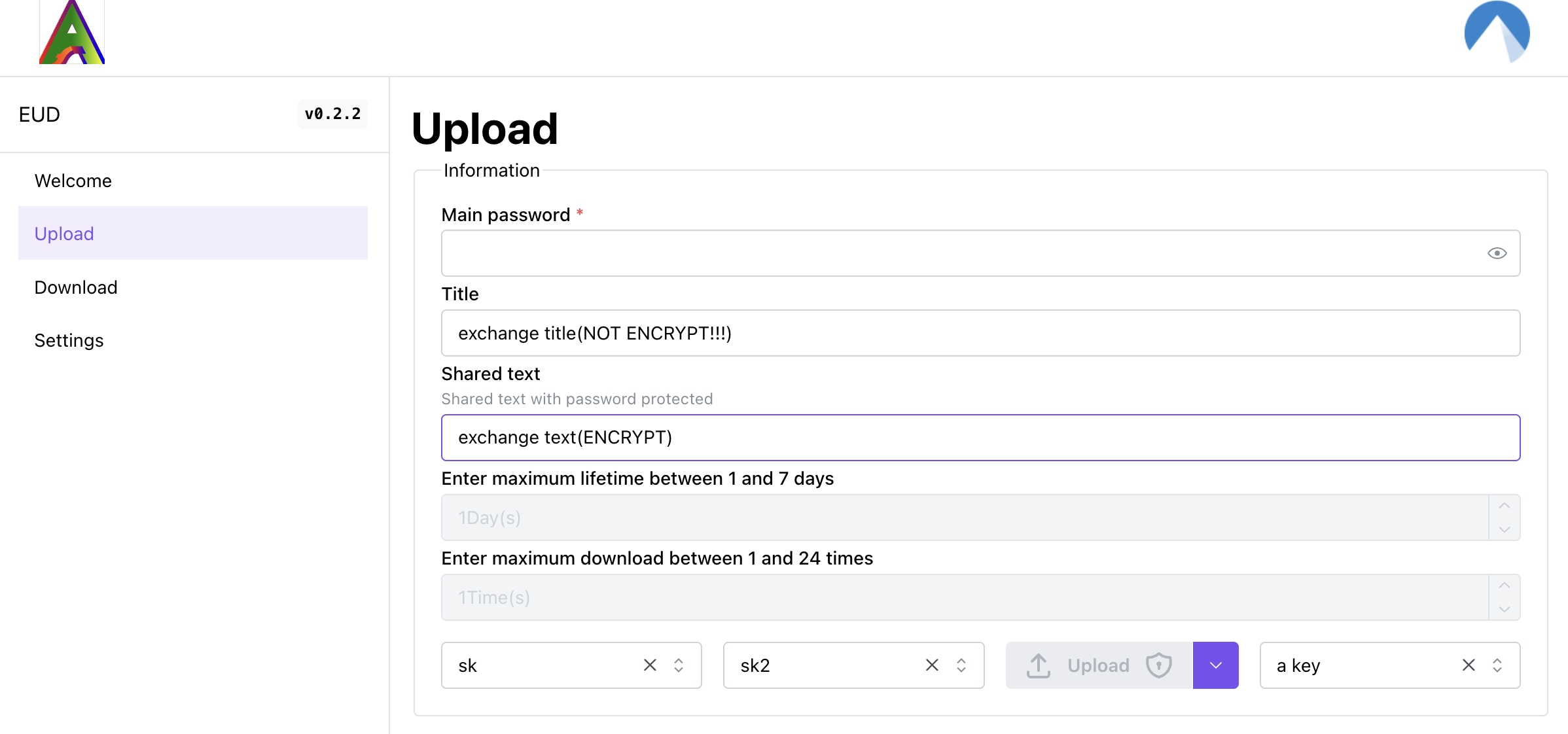 Upload the text or file with single password or stored key